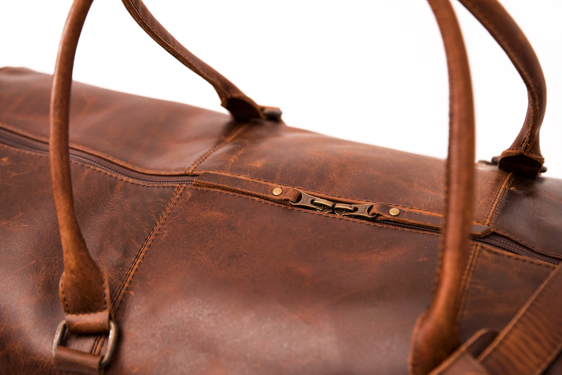 Our skilled artisans meticulously crafted this bag by hand using vegetable-tanned full-grain leather. No cardboard, synthetic or artificial materials were used in making this bag; just premium brass hardware in an antique finish, YKK zipper, cotton as lining, and the best kind of leather. Ensuring that this bag will be with you for years is its uncompromising craftsmanship. The bag is sewn using super-strong thread and its stress points are reinforced with rivets.