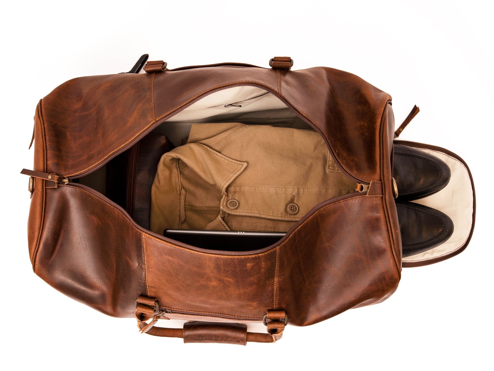 The Shoe Pocket Duffle will be your best companion for years to come. This weekender bag is thoughtfully designed with a shoe compartment and offers great deal of room for all your travel needs. We have used heavy duty cotton lining that is easy to clean, super strong thread, and all pressure points are reinforced with rivets.