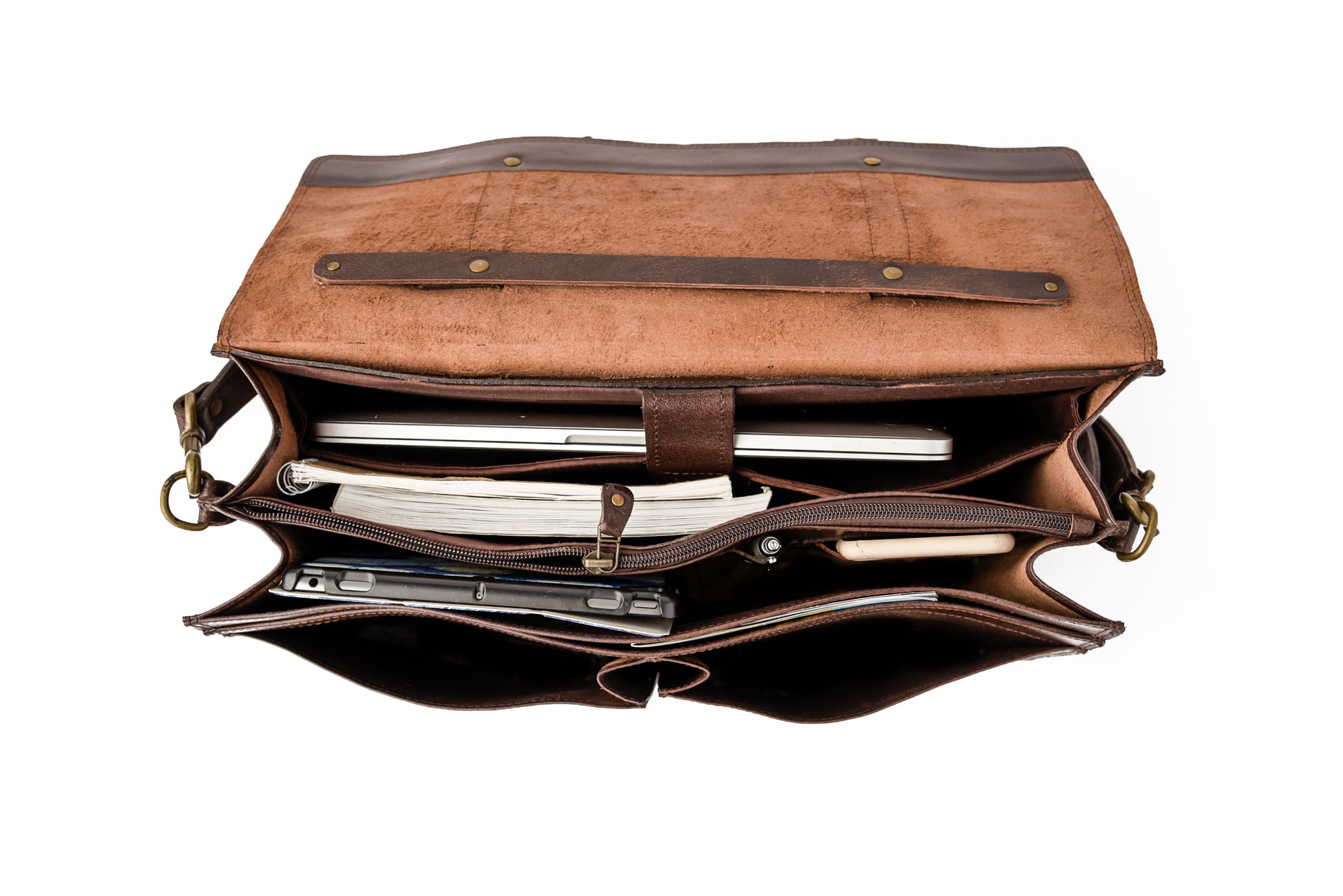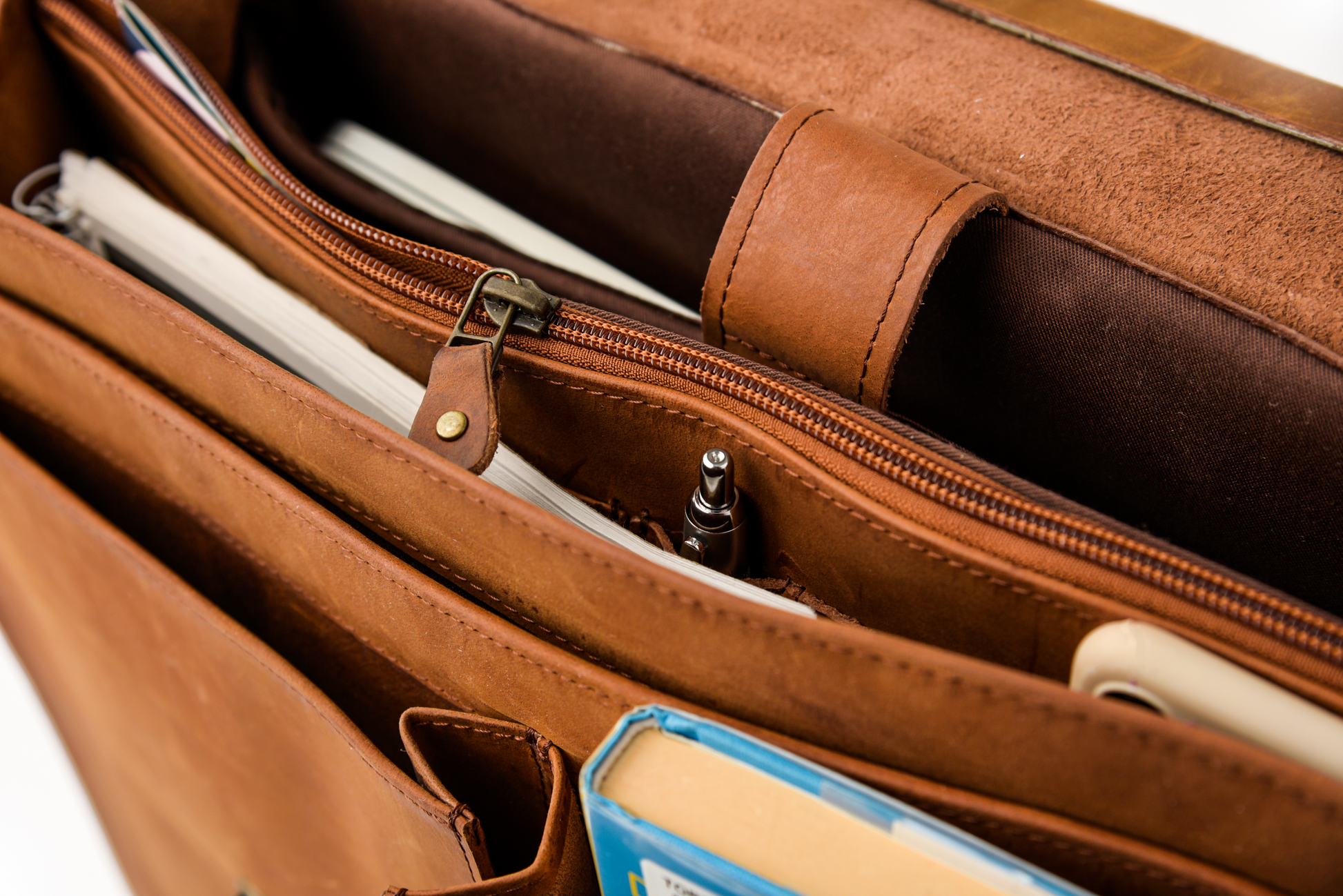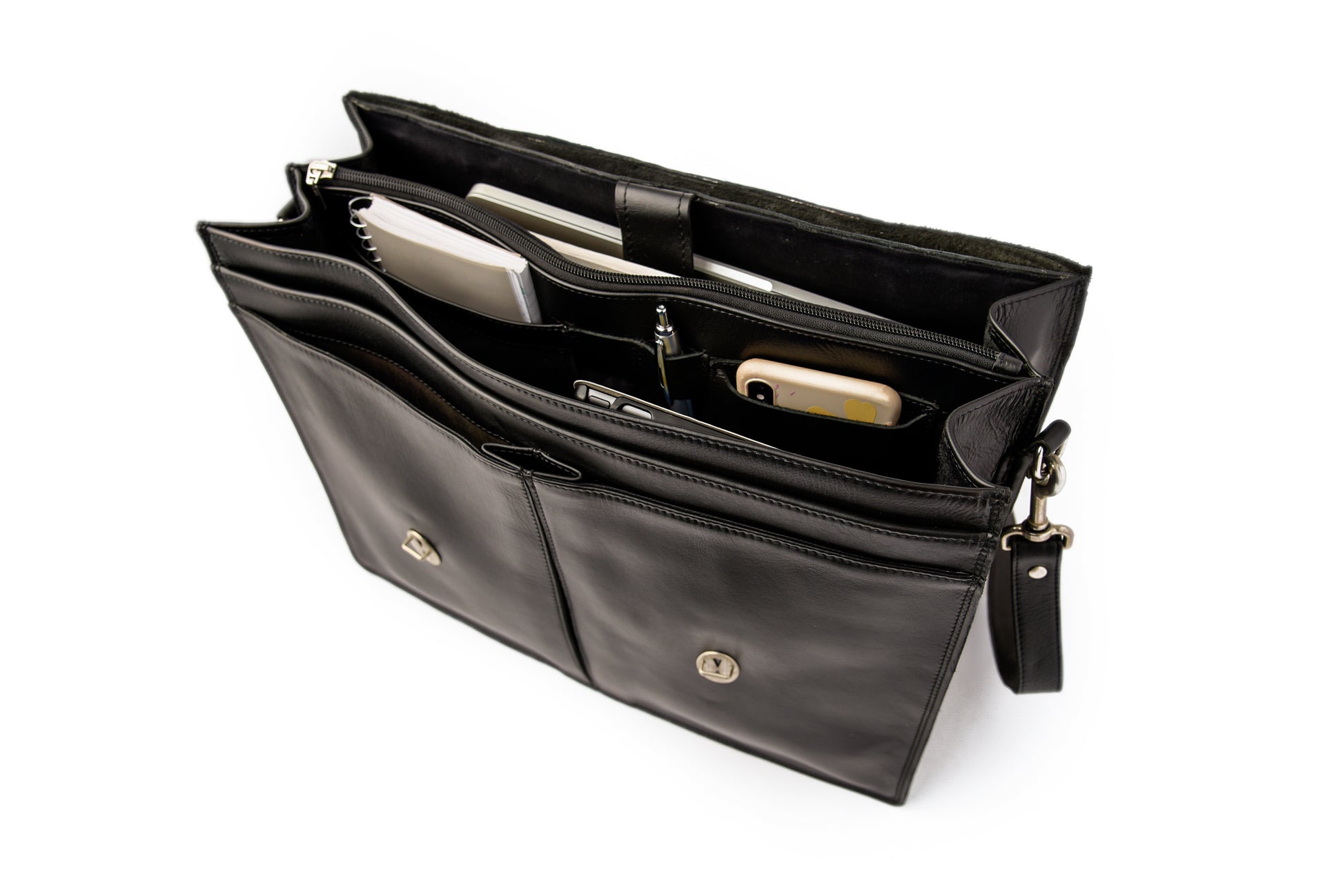 - Small compartments designed to store your pens, cell phone, other accessories