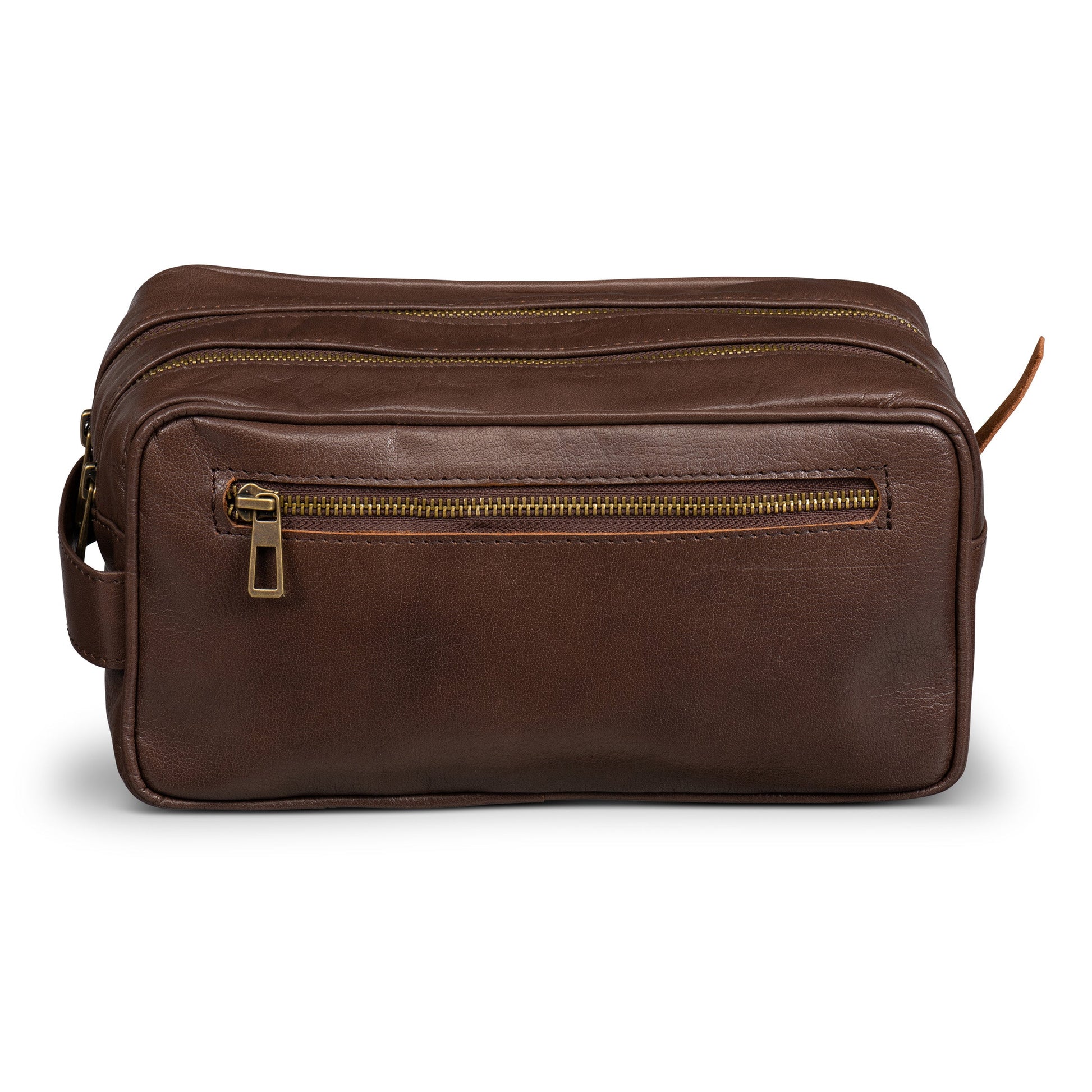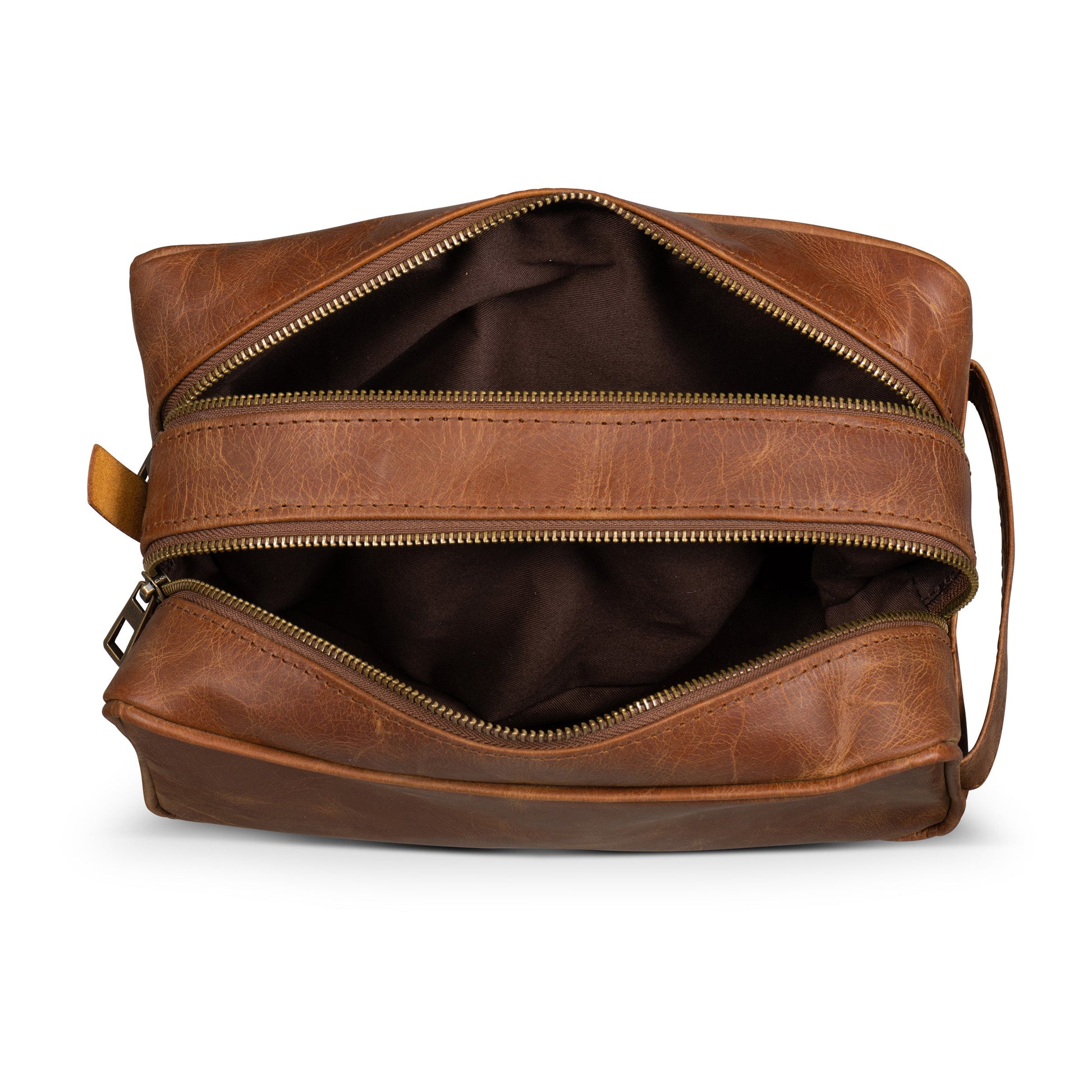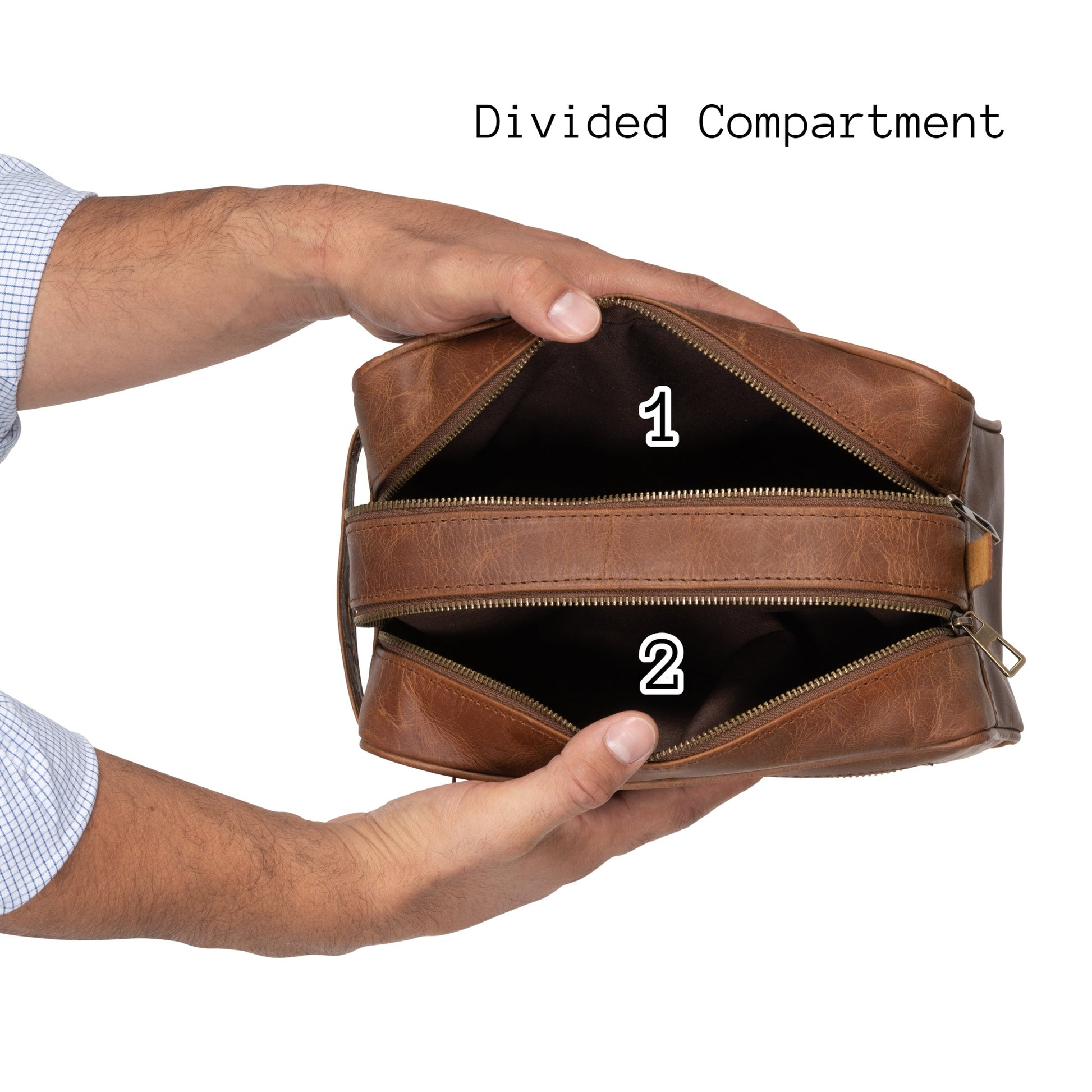 It has two divided main compartments secured by tough and highly reliable YKK zippers. The inner nylon lining is water-resistant so you don't have to worry about accidental spills. Handcrafted meticulously in vegetable-tanned full-grain leather, this is the most durable toiletry bag you'll ever own. The distressed brown finish passes the "would-I-be-embarrassed-if-someone-saw-this-in-my-bag" test.