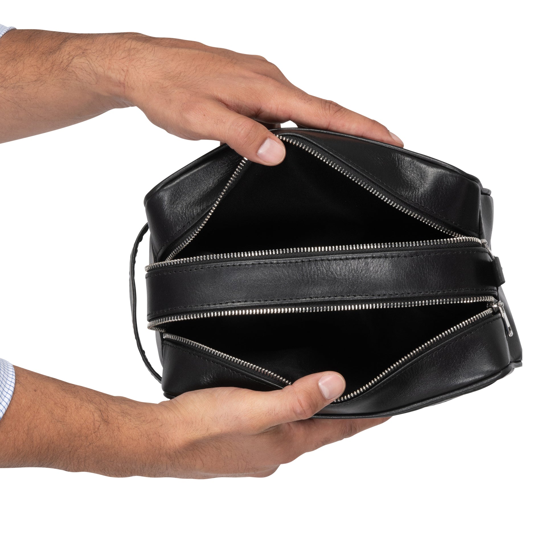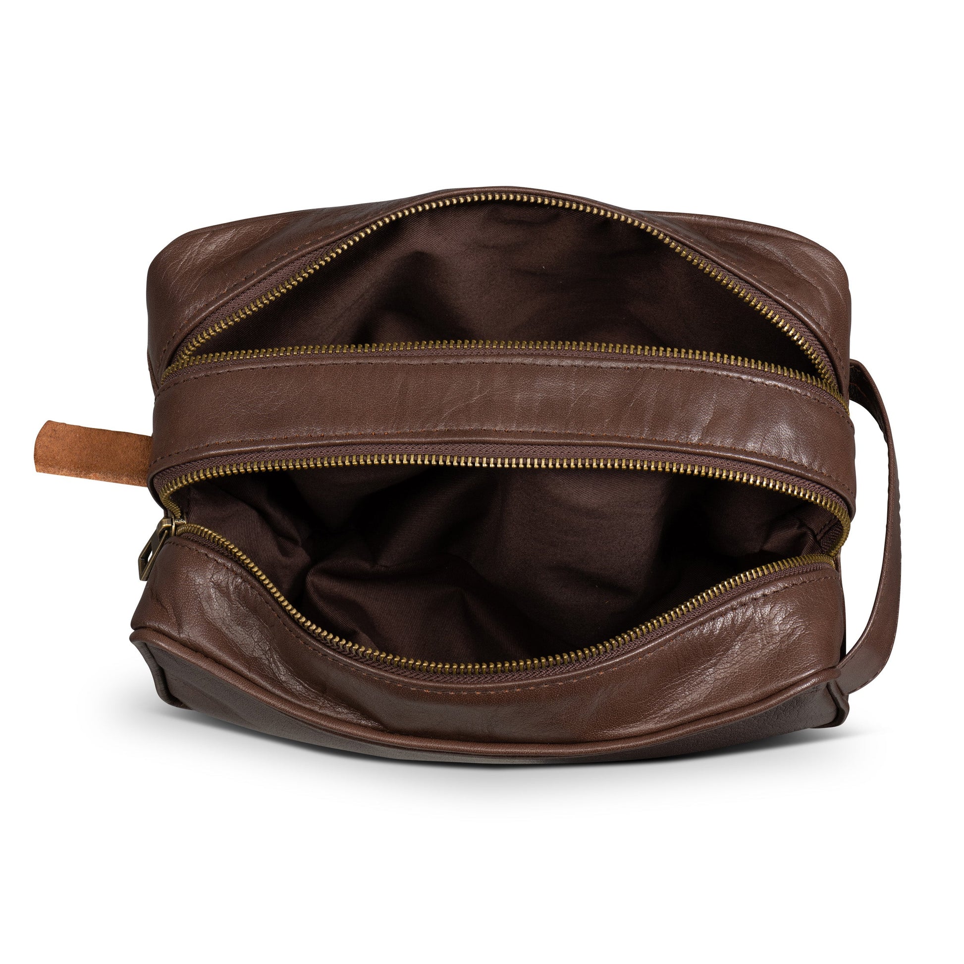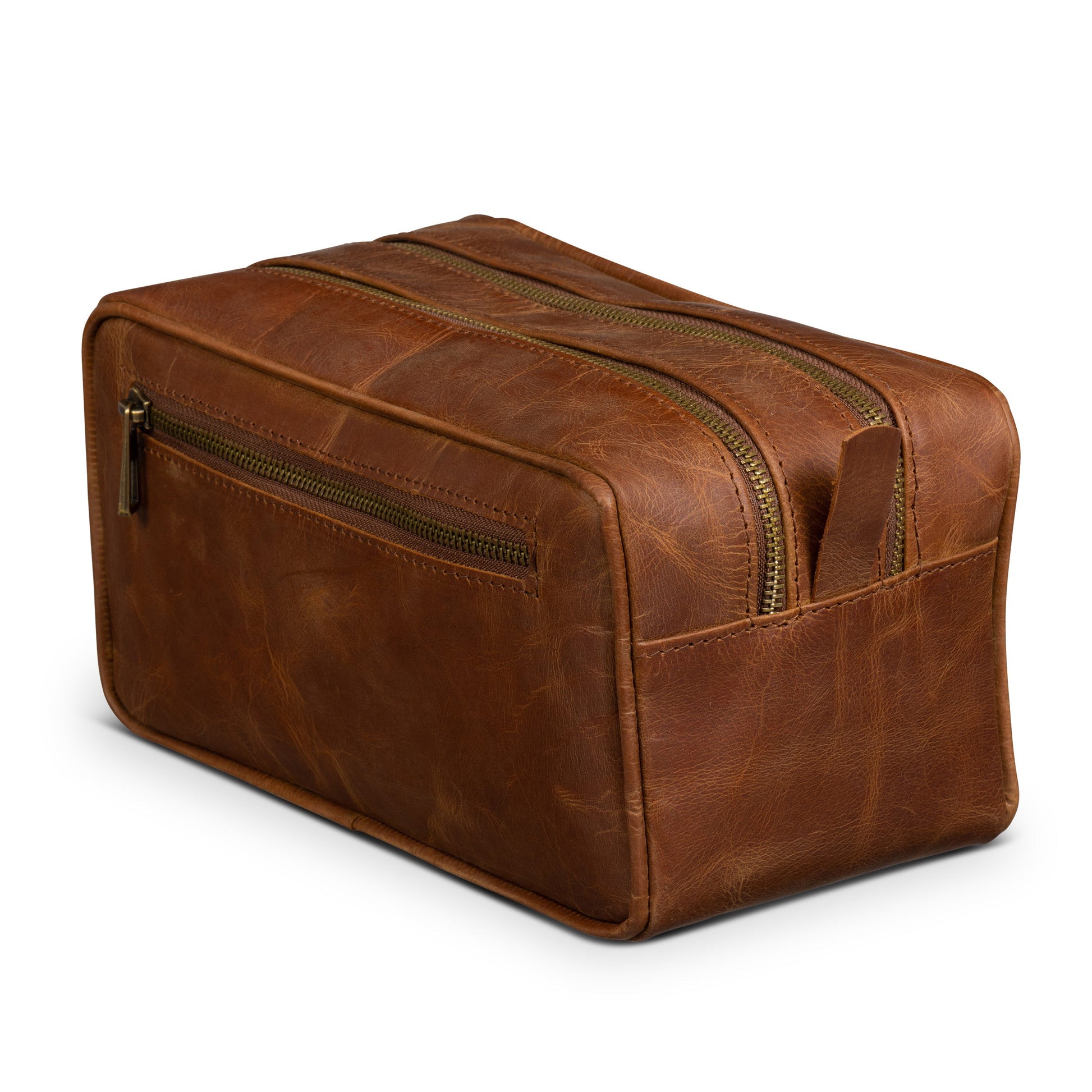 It has two divided main compartments secured by tough and highly reliable YKK zippers. The inner nylon lining is water-resistant so you don't have to worry about accidental spills. Handcrafted meticulously in vegetable-tanned full-grain leather, this is the most durable toiletry bag you'll ever own. The distressed brown finish passes the "would-I-be-embarrassed-if-someone-saw-this-in-my-bag" test.