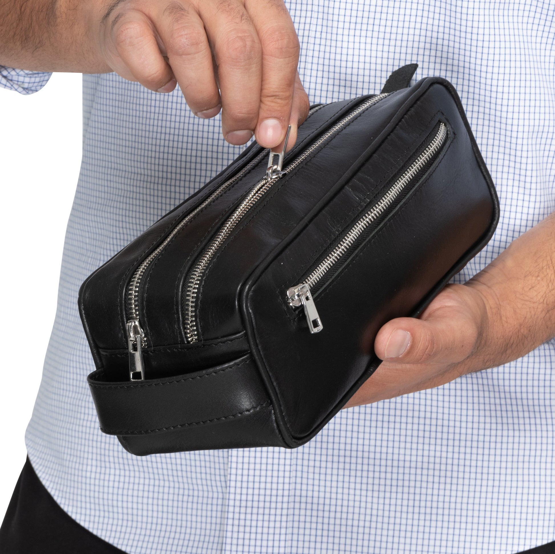 Offered with a lifetime warranty, this leather toiletry kit for men will efficiently and stylishly store grooming products through many travels and for a long, long time.