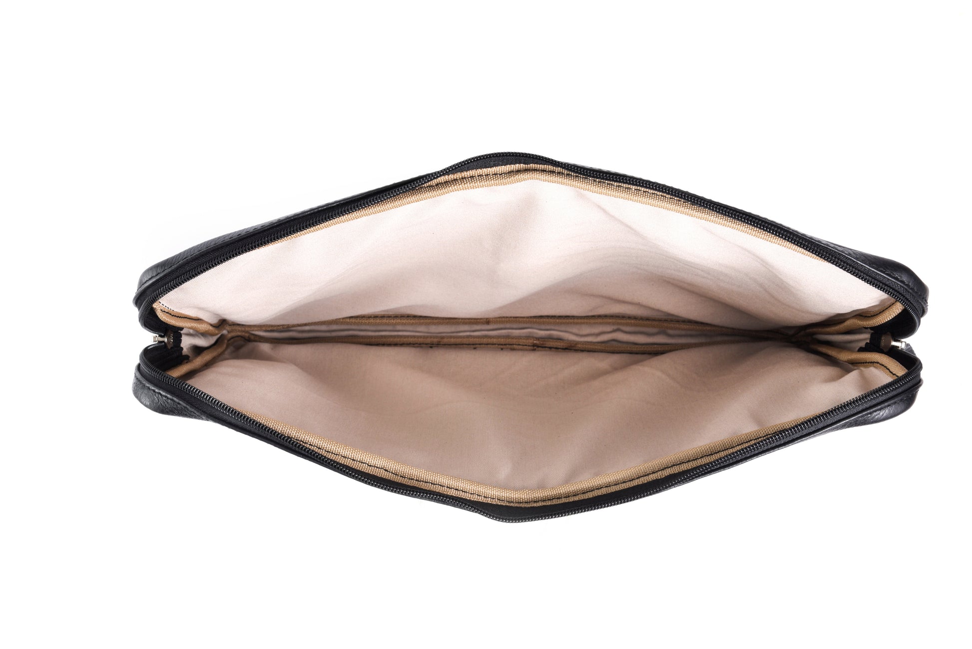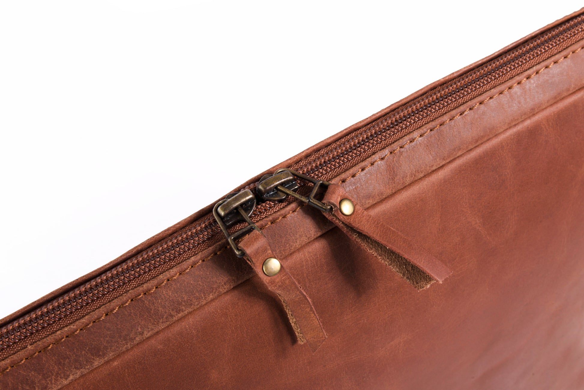 This stylish laptop sleeve is ready to provide stylish protection for one of your prized possessions. The main compartment is amply padded so your gadget is protected from accidental drops. This leather laptop case also protects your laptop from getting scratched by the other items in your work bag. A pair of reliable YKK zippers is used to ensure that the sleeve's precious content is kept safe and secured.