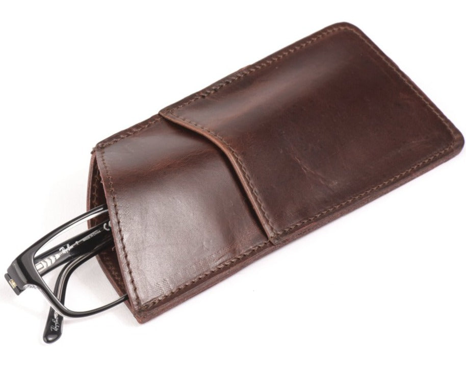 Our Leather Sunglasses case belong to our premium full-grain product line for men and women who are looking for seeking a stylish and unique way to carry sunglasses. The leather sunglasses case is handcrafted to perfection and designed with an opening allowing you to protect your shades. In order to produce the sunglasses cases with extreme durability, we have utilized high quality Full Grain Vegetable Tanned Leather.