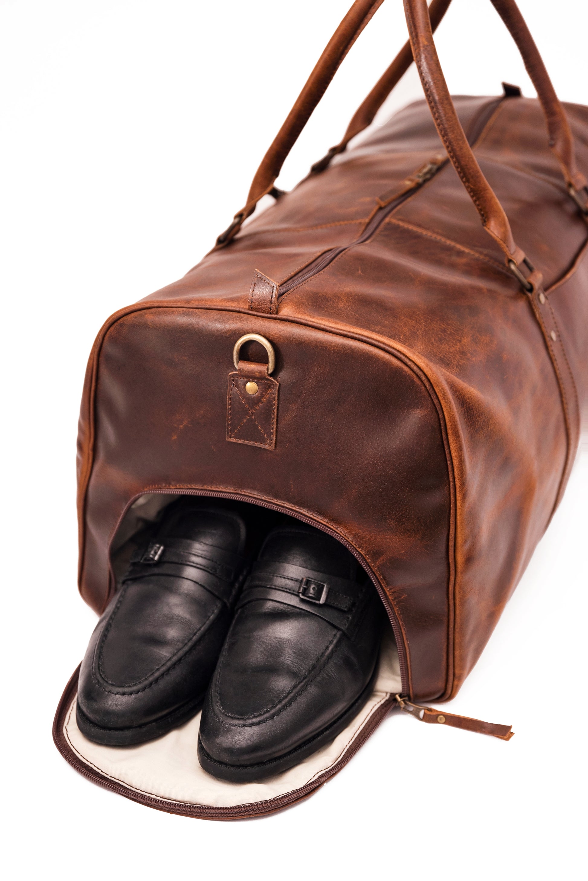 Our skilled artisans meticulously crafted this bag by hand using vegetable-tanned full-grain leather. No cardboard, synthetic or artificial materials were used in making this bag; just premium brass hardware in an antique finish, YKK zipper, cotton as lining, and the best kind of leather. Ensuring that this bag will be with you for years is its uncompromising craftsmanship. The bag is sewn using super-strong thread and its stress points are reinforced with rivets.